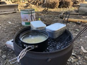 焚き火で炊くお米はいつもより美味しく感じます。